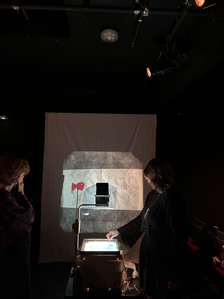Un stage en partenariat avec le Conservatoire à Rayonnement Régional de Lille durant lequel Marie Girardin, co-porteuse du projet du Collectif Maw Maw, a proposé une exploration des multiples possibilités de réalisations et de manipulation de l’image rétroprojetée. Les stagiaires ont créé des séquences visuelles à partir de la thématique de la fugue et de textes choisis. Ils et elles ont adapté leurs propositions à différentes tranches d’âges de la jeunesse (3-6 ans, 6-10 ans, 11-14 ans et à partir de 15 ans) en s’interrogeant sur la façon de construire une narration en fonction du type de public à qui l’on s’adresse. Finalement, ils et elles ont vu comment la voix, qu’elle soit souffle, chant ou narration, colore et influence l’image, l’inspire et la fait naître ; et enfin comment l’image et la voix se rencontrent de façon organique, se tissent et permettent de transmettre une émotion.