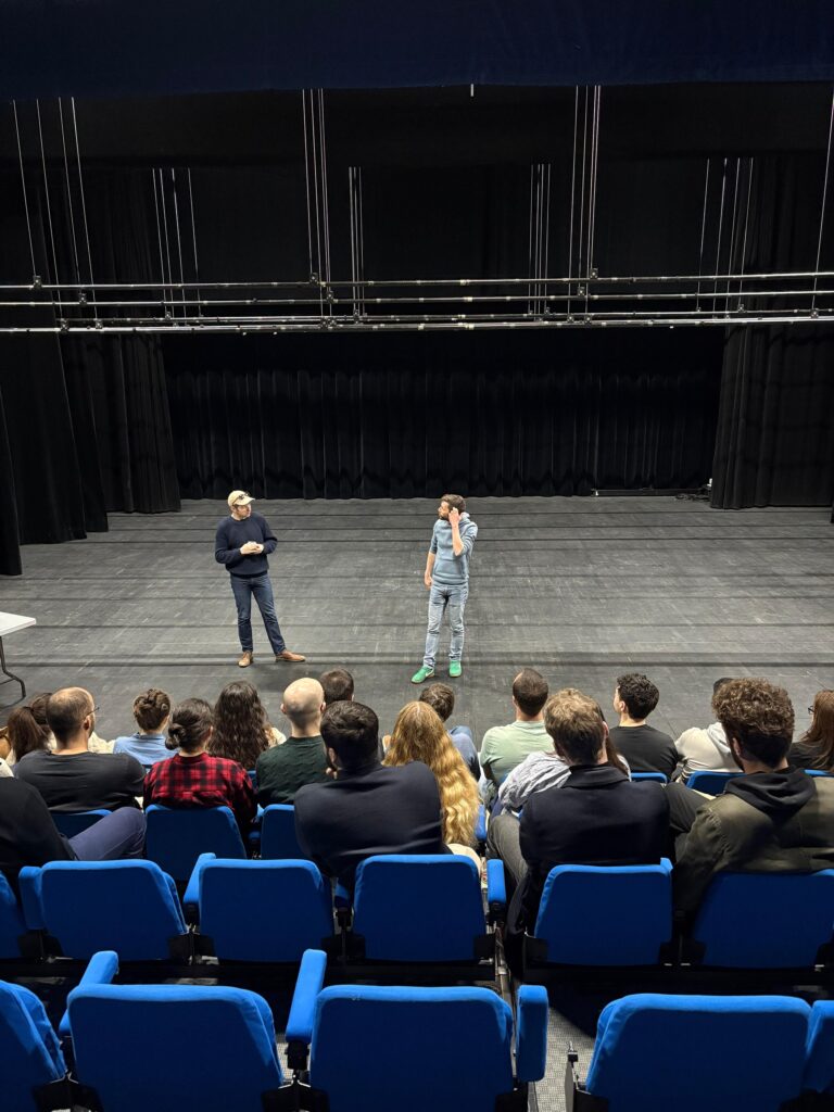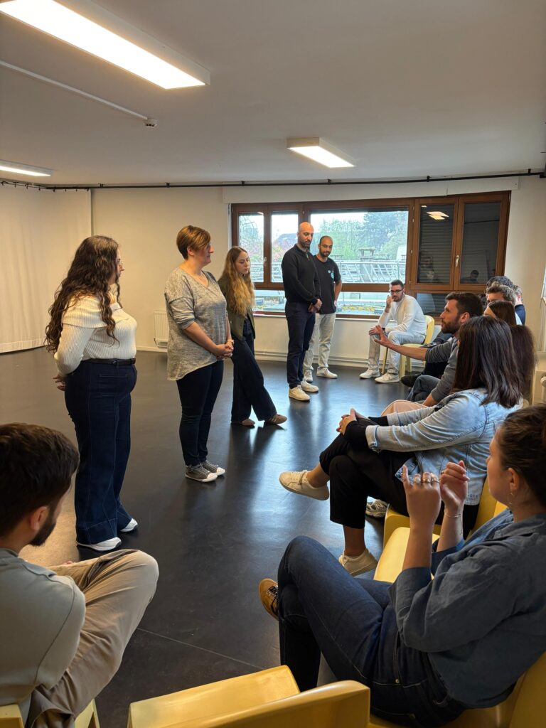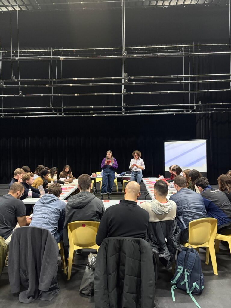 La deuxième journée s’est tenue le jeudi 2 avril pendant laquelle 27 professeur·es de la 6ème à la terminale ont passé la journée au Grand Bleu. Le matin, ils et elles ont pu bénéficier d’un atelier de pratique artistique proposé par les artistes Simon Decobert et Simon Dussart. L’après-midi était consacrée aux outils et moyens existants pour construire et développer un projet artistique et culturel avec les présentations de Julie Casier (enseignante missionnée) et Laura Costa, chargée des relations avec les publics pour leur présenter les outils de médiation et d’accompagnement à disposition de ces futur.es enseignant.es. L’après-midi s’est clôturée par une mise en situation qui leur a permis de réfléchir à un projet multidisciplinaire autour d’un spectacle de la programmation du Grand Bleu.