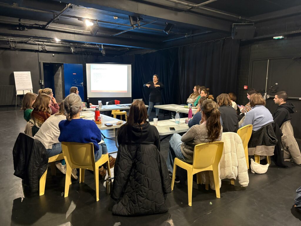 Mercredi 1er avril nous avons également accueilli une formation de l’inspection académique qui s’est adressée aux enseignant·es de maternelle de la circonscription de Lille 1 – Nord (Vauban / Bois-Blancs / Moulins / Centre / Vieux Lille). Leurs objectifs de formation visent à faire le lien entre les pratiques artistiques dans les classes et l’accès aux structures culturelles de proximité et notamment celles qui peuvent s’adapter au jeune public.