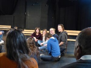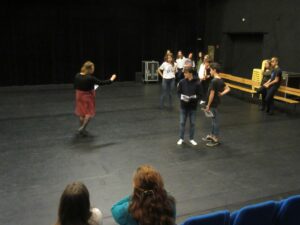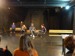 Le mercredi, les jeunes ont réalisé un travail autour du texte de « Costa le Rouge » portant sur la voix et sur le corps avec Pauline.