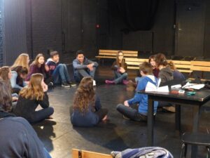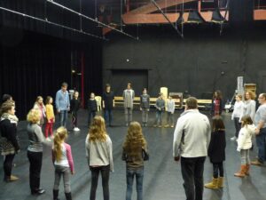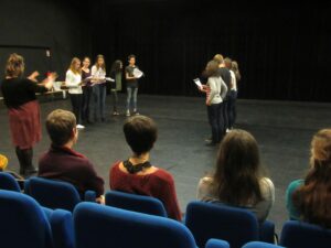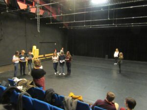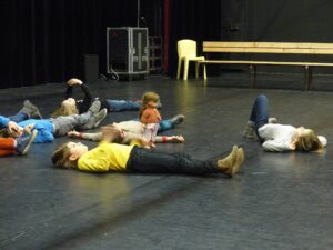 Mais que pouvons-nous faire durant cette séance ? Échauffer son corps, s’exercer à projeter sa voix (pour être bien entendu !), travailler l’occupation de l’espace scénique,… et donner un petit aperçu du spectacle qui se jouera lors de notre belle fête des labos !