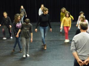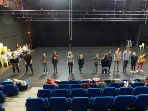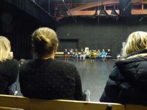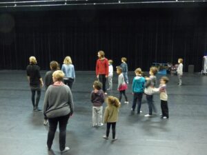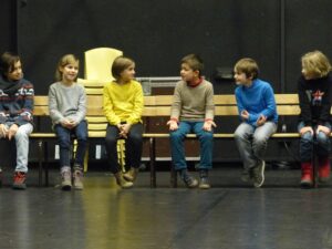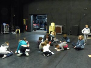 Avec Laure, les jeunes de 8-11 ans du labo « les voix secrètes de l’enfance » ont accueilli leurs proches en silence afin de travailler leur présence au plateau et ont partagé avec eux un passage du « Petit Nicolas ».