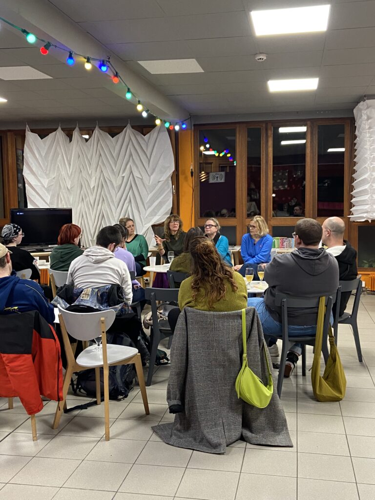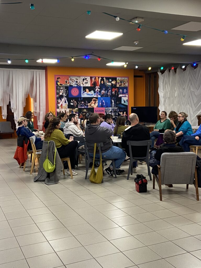 Le 25 novembre, le Grand Bleu a accueilli le deuxième Curieux Apéro de la saison, consacré aux spectacles à toucher. Ces rendez-vous permettent d’ouvrir des espaces d’échanges, des moments de convivialité où un.e intervenant.e est invité.e au Grand Bleu pour éclairer un aspect de la programmation de la saison en cours.