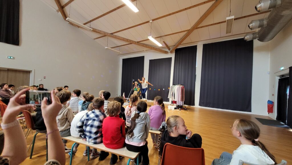 Dans le cadre de la décentralisation, les spectacles Marcelle Lumanité et Fiesta ont été présentés au sein de plusieurs établissements scolaires des Hauts-de-France, les 29 et 30 septembre ainsi que les 2 et 3 octobre. Quatre écoles ont accueilli Marcelle Lumanité : l’école Pasteur à Lambersart, l’école Ariane Capon à Lille, l’école Jules Ferry et l’école Sainte-Thérèse. De leur côté, quatre autres établissements ont reçu Fiesta : l’école Curie Pasteur à Lomme, l’école Léon Jouhaux à Lille, l’école Adolphe Dutoit à Seclin et l’école Arago à Lille. Destinées aux classes du CP au CM2, ces représentations ont permis à près de 800 élèves issus d’une vingtaine de classes de vivre le théâtre au cœur de leur école et d’échanger directement avec les artistes : (comédien·nes et metteur·euses en scène) favorisant ainsi une rencontre vivante et enrichissante entre l’art et la jeunesse.