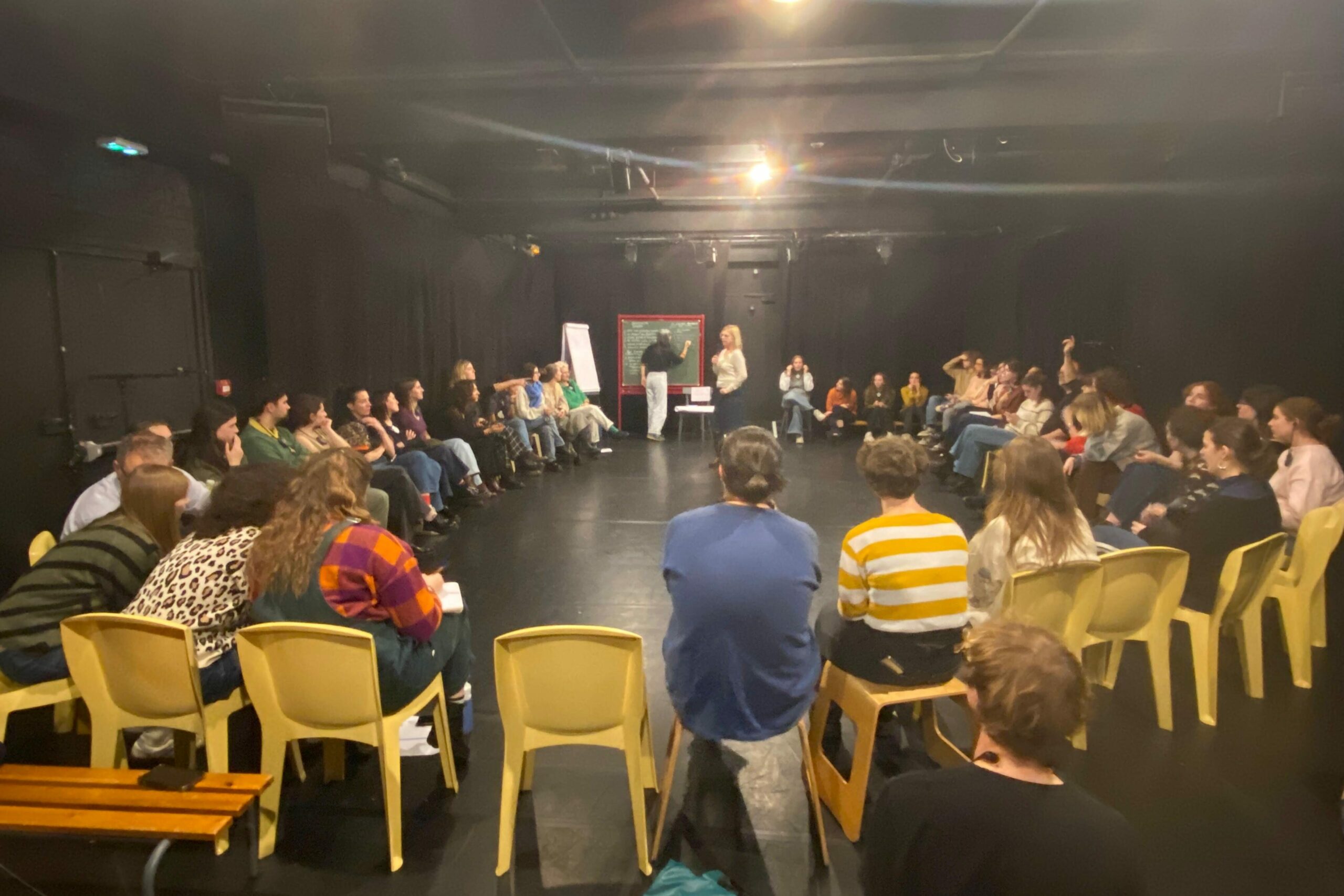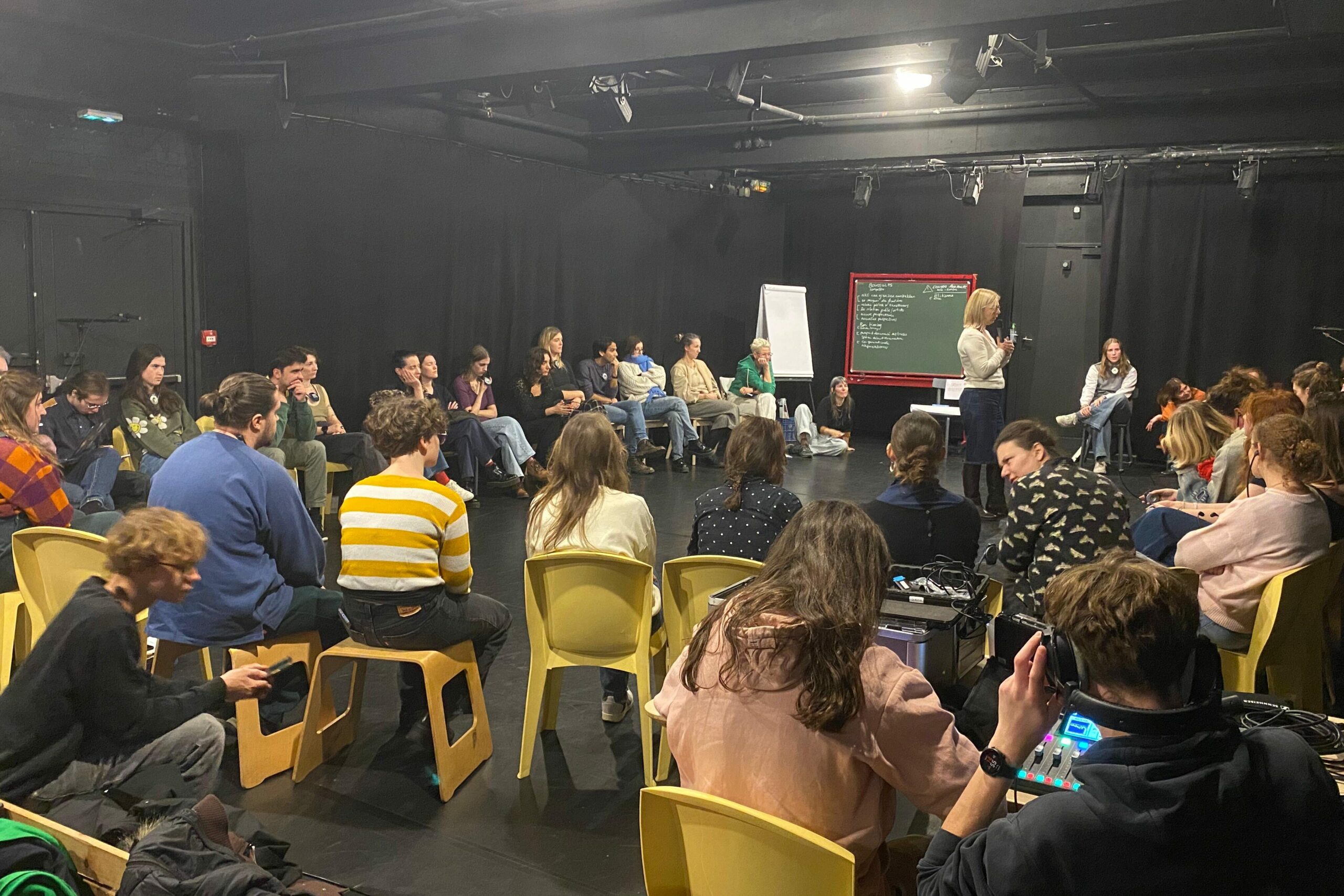 Aux côtés des artistes Rachel Dufour (Cie Les Guêpes Rouges) et Lara Staal, étaient réunis des professionnel·les des structures partenaires du NEXT Festival, des étudiant·es belges et français, ainsi que d’ancien·nes participant·es de TeeNEXTers.